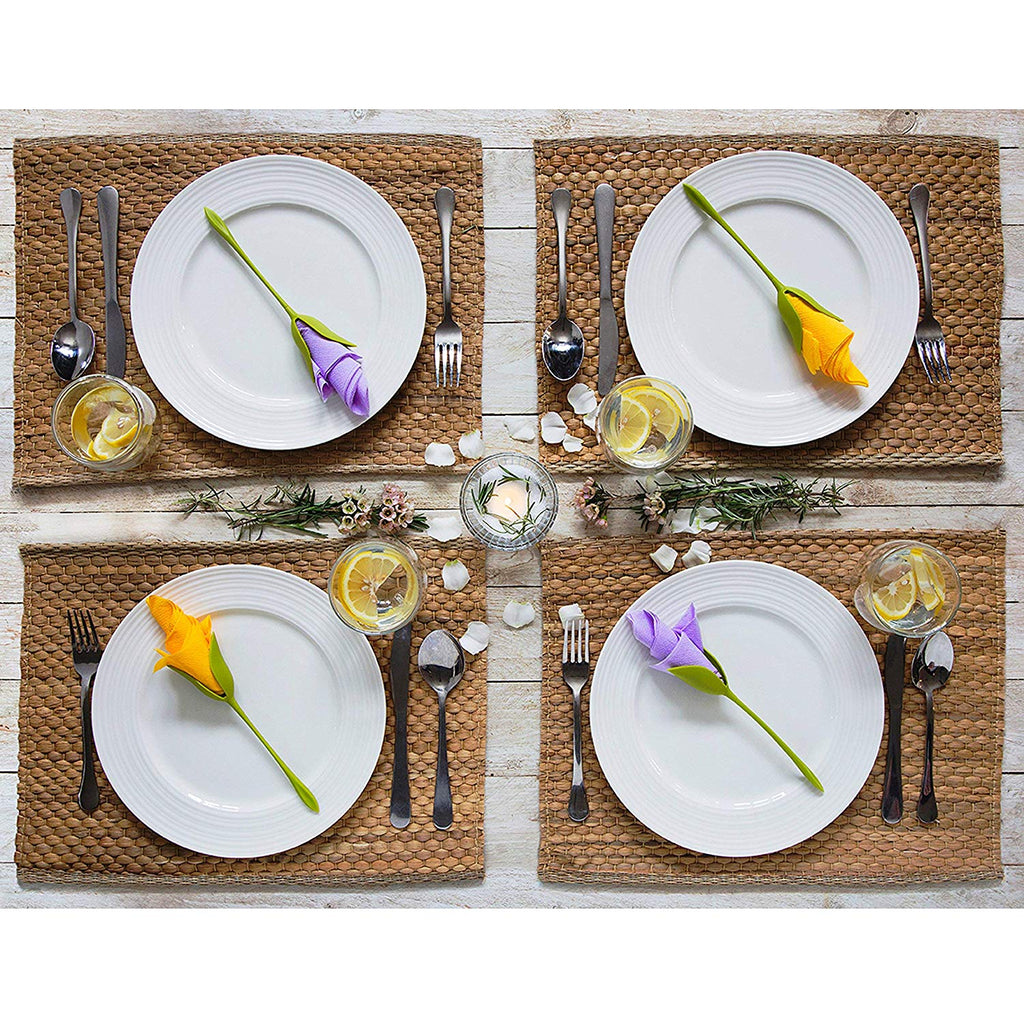 These festive napkin rings look like stems and you simply shape the napkin around it. The result is an attractively folded napkin that looks like a flower - no more messing around with paper and frustration! The package contains four stems and instructions on how to fold various kinds of flowers, anything from a rose to an amaryllis to a tulip! You get four napkins, but you can naturally use any paper napkin you want. Why not shape red napkins into roses and decorate the table on St.Valentine's Day!